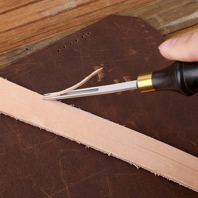 Precision Bearing Steel Blade: Crafted from high-hardness bearing steel with razor-sharp, angled cutting edge — delivers smooth, consistent skiving and beveling on leather edges without tearing or jagged cuts.