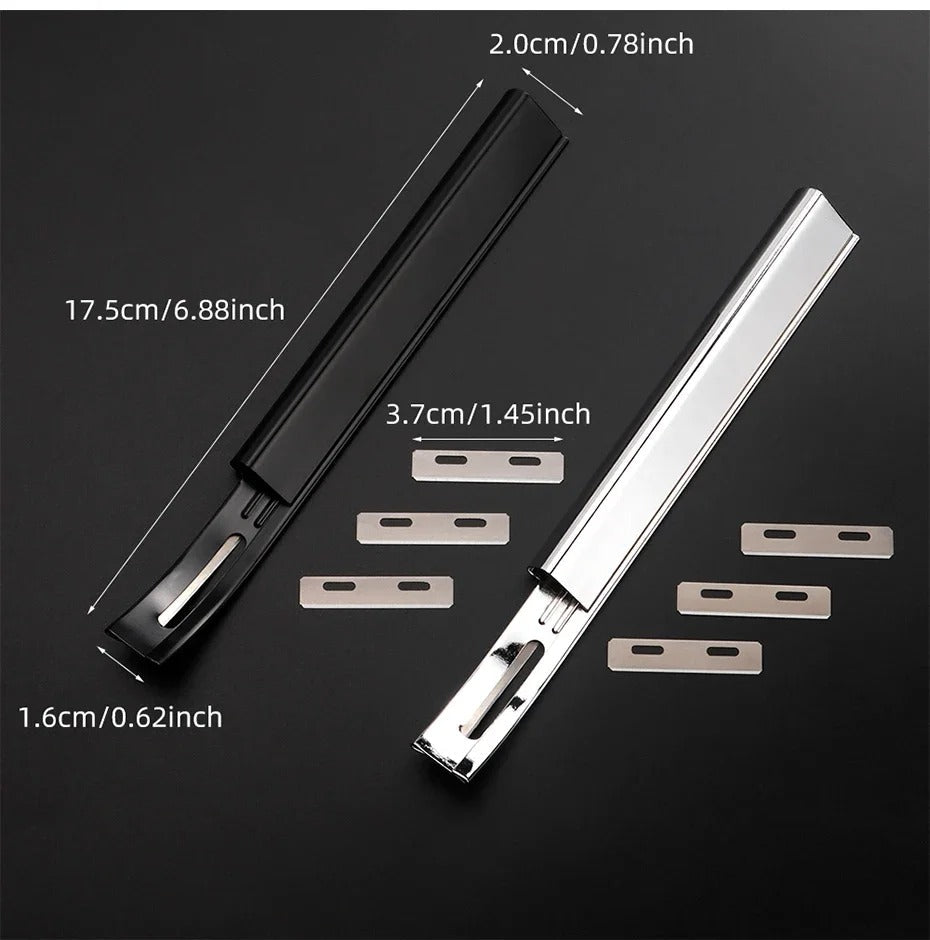 Includes 1 knife and 3 blades — offering a complete kit for immediate use and spares, with easily replaceable blades stored in plastic containers, simplifying maintenance and ensuring safe, portable storage.